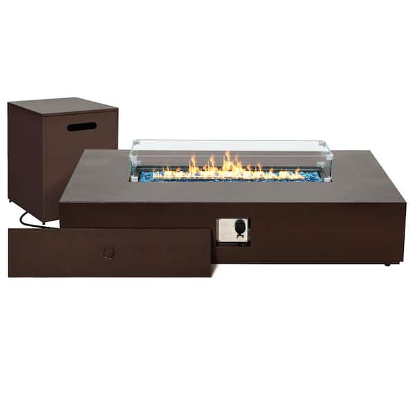 56 in. 50.000 BTU Iron Propane Outdoor Fire Pit Table with Tank Table and Glass Wind Guard