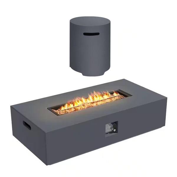 56 in. x 28 in. Rectangle Concrete Propane Outdoor Fire Pit in Dark Gray