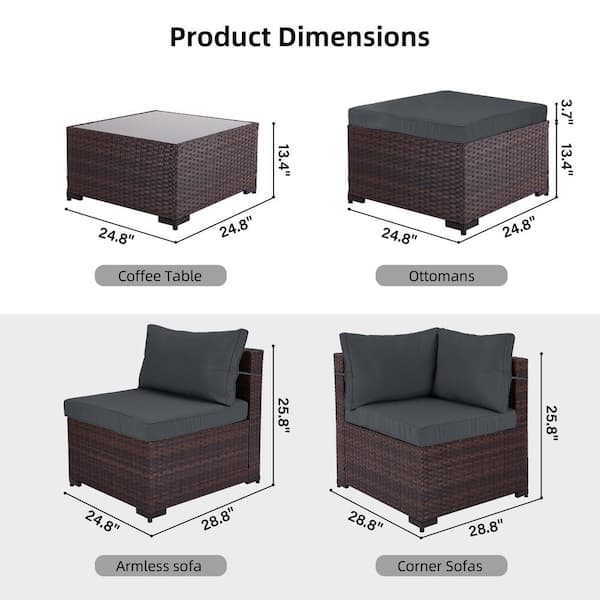 7-Piece Outdoor Brown Wicker Patio Conversation Sofa Set with Ottomans for Patio with Dark Gray Cushions