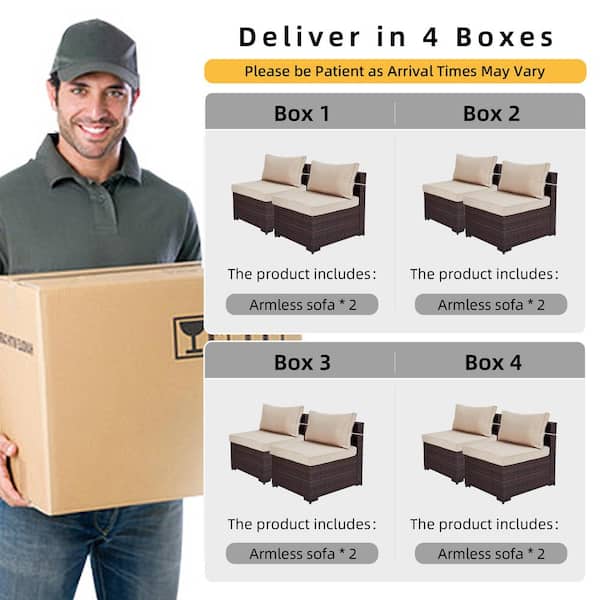 8-Person Wicker Patio Conversation Seating Set with Cushions in Beige