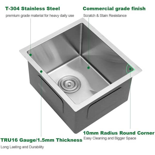 14 in. Undermount Single Bowl 16-Gauge Brushed Nickel Stainless Steel Kitchen Sink with Bottom Grids