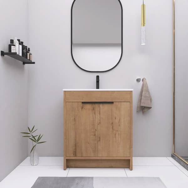 30 in. W x 18.30 in. D x 34.3 in. H Freestanding Bath Vanity Cabinet in Imitative Oak with White Ceramic Top