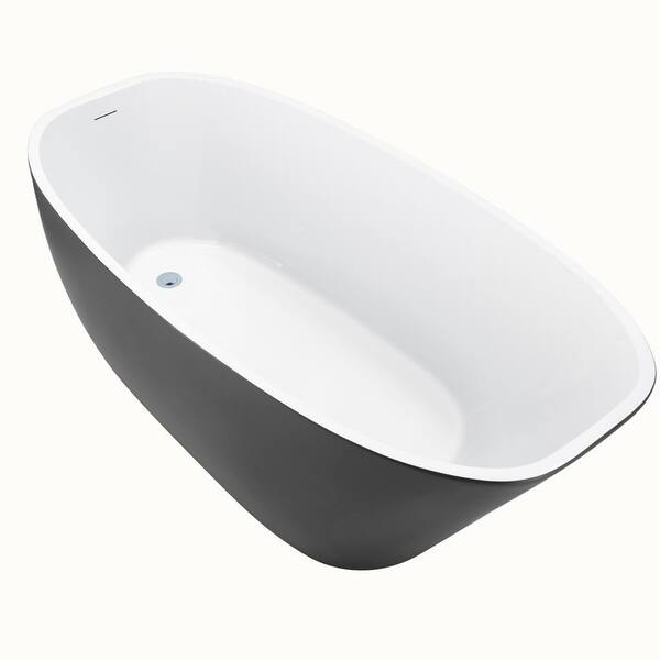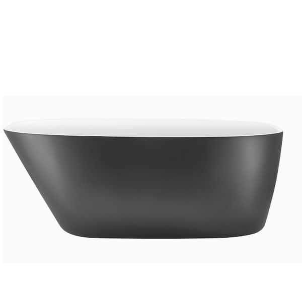 59 in. Acrylic Freestanding Flatbottom Soaking Non-Whirlpool Single-Slipper Bathtub in Gray