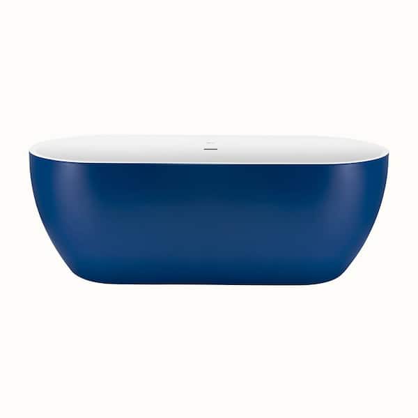 59 in. Acrylic Oval Shaped Freestanding Flatbottom Double-Ended Soaking Non-Whirlpool Bathtub in Blue