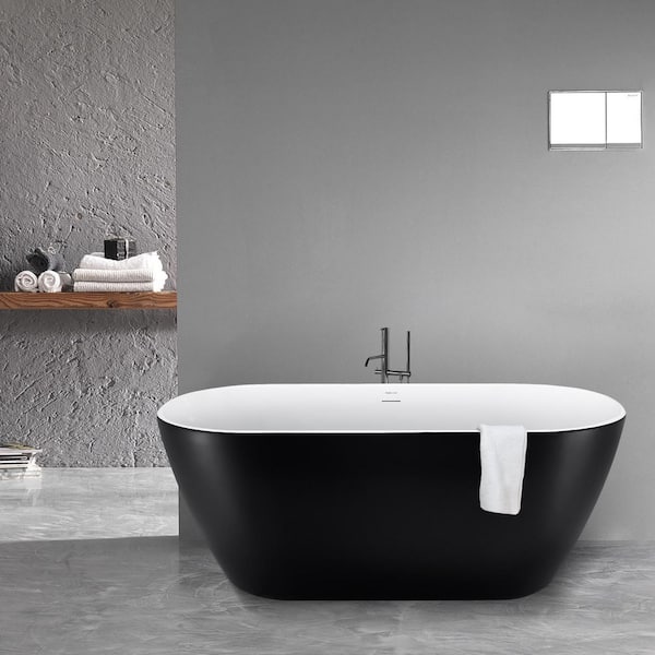 59 in. Acrylic Rectangular Shaped Freestanding Flatbottom Double-Ended Soaking Non-Whirlpool Bathtub in Black