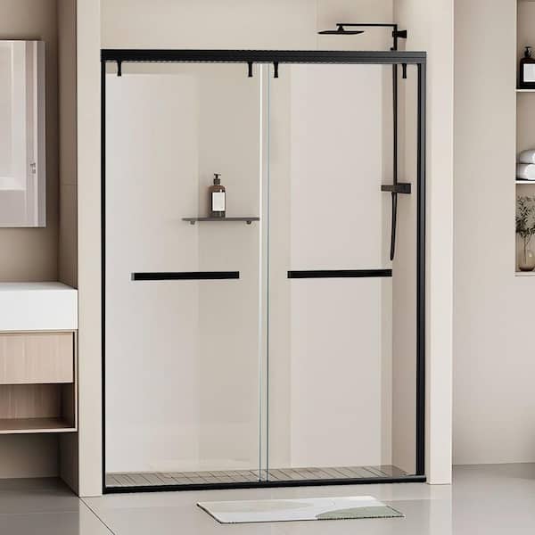 60 in. W x 76 in. H Double Sliding Frameless Shower Door in Matte Black with 5/16 in. Tempered Glass