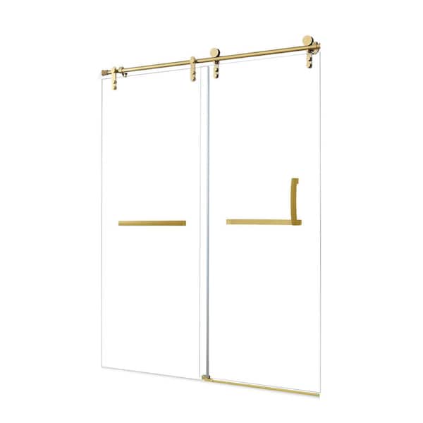 60 in. W x 76 in. H Single Sliding Frameless Shower Door in Gold with 5/16 in. Tempered Glass