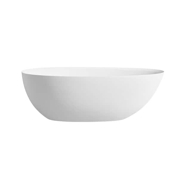 67 in. Stone Resin Freestanding Flatbottom Soaking Non-Whirlpool Single-Slipper Bathtub in White