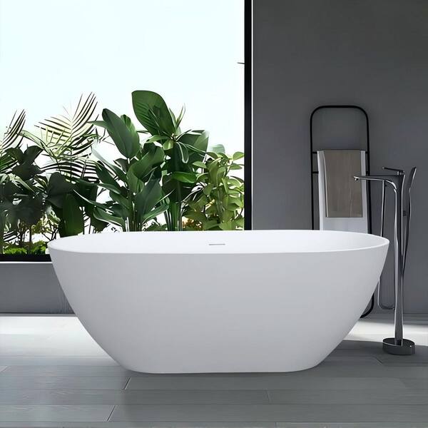 Aristocratic 59 in. x 29.5 in. Solid Surface Stone Resin Soaking Glossy White Bathtub with Center Drain in White