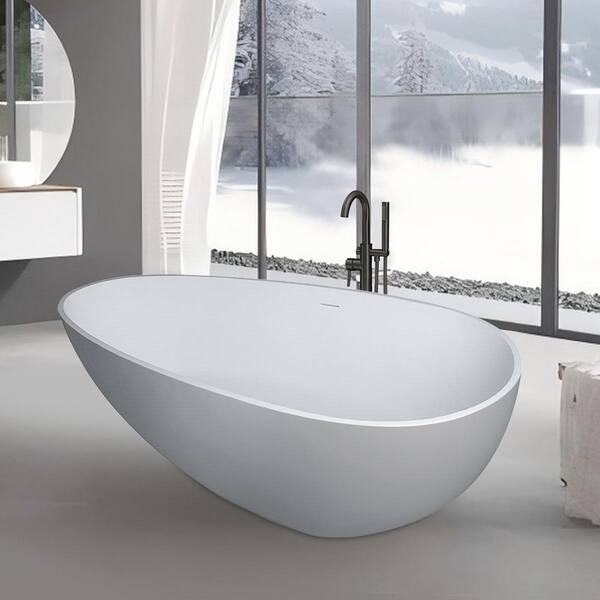 Aristocratic 67 in. x 33.5 in. Solid Surface Stone Resin Soaking White Bathtub with Center Drain in White