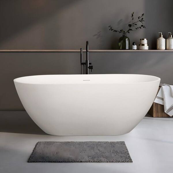Aristocratic 69 in. x 29.5 in. Solid Surface Stone Resin Soaking White Bathtub with Center Drain in White