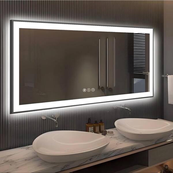 Aura 60 in. W x 30 in. H Rectangular Frameless Anti-Fog Ceiling Wall Mount Bathroom Vanity Mirror in Silver