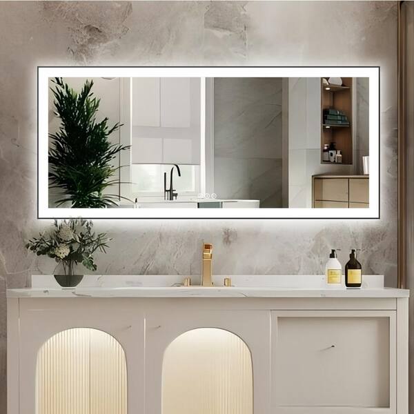Aura 72 in. W x 32 in. H Rectangular Frameless Anti-Fog Ceiling Wall Mount Bathroom Vanity Mirror in Silver