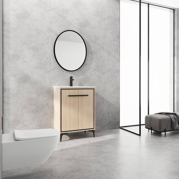 Brescia 24.02 in. W x 18.31 in. D Freestanding Bath Vanity in Original Oak with White Ceramic Top Unassembled