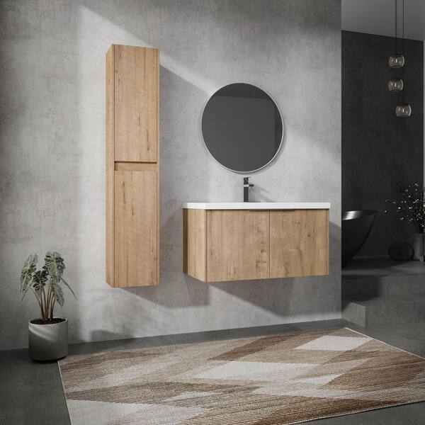 Combined 35.4 in. W X 18.1 in. D x 19.3 in. H Floating Bath Vanity in Imitative Oak with White Resin Vanity Top