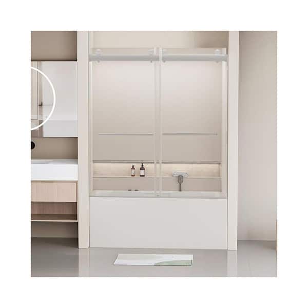 Cursiva 60 in. W x 62 in. H Double Sliding Frameless Bypass Tub Door in Chrome with Clear Glass