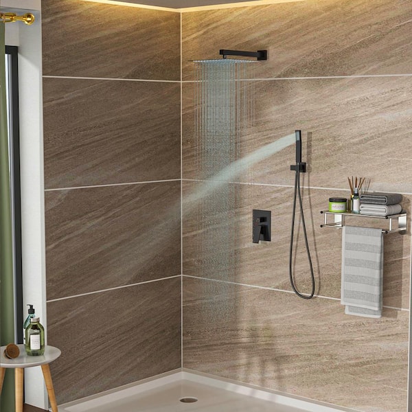Dual Handle 2-Spray Shower Faucet 12 Inch.Square Shower System with Rough-in Valve in Oil Rubber Bronze