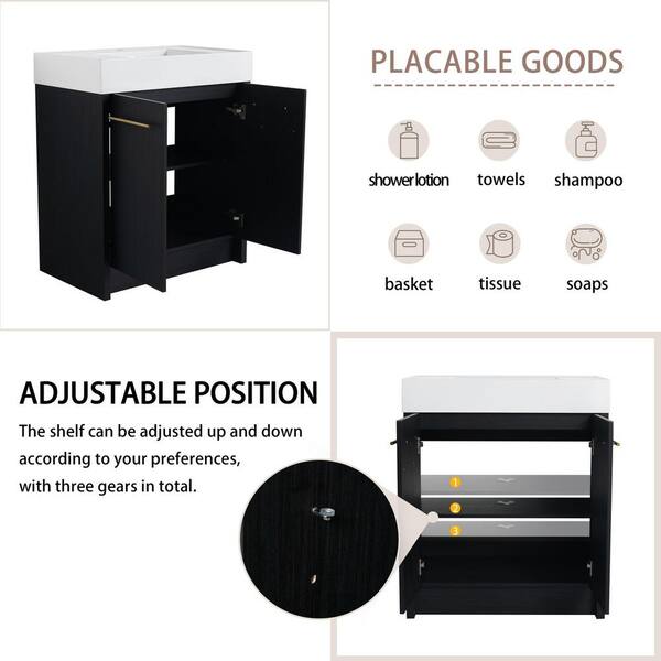 Elegant 30 in. W x 18.1 in. D x 35.1 in. H Freestanding Bath Vanity in Black with White Resin Top