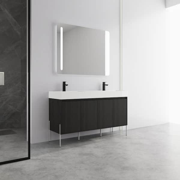 Fommosa 59.06 in. W x 18.13 in. D Double Sinks Freestanding Black Bath Vanity with White Resin Top Unassembled