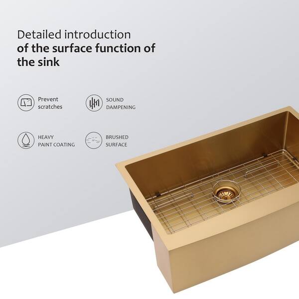 Gold 16 G Stainless Steel 30 in. Single Bowl Farmhouse Apron Workstation Kitchen Sink with Drainboard and Grid