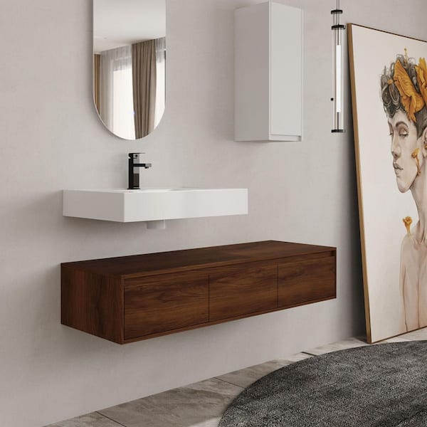 Jacques 58.7 in. W x 18.1 in. D x 15.8 in. H Floating Bath Vanity in Brown Ebony with White Resin Vanity Top