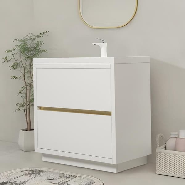 Lafarre 35.43 in. W x 19.69 in. D Freestanding Bath Vanity in Glossy White with Gloss White Resin Top Assembled