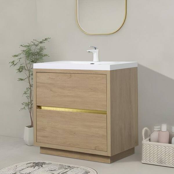Lafarre 35.43 in. W x 19. 69in. D Freestanding Bath Vanity in Natural Oak with Gloss White Resin Top Assembled