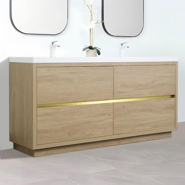 Lafarre 70.87 in. W x 19.69 in. D Double Sink Freestanding Bath Vanity in Natural Oak with White Resin Top Assembled