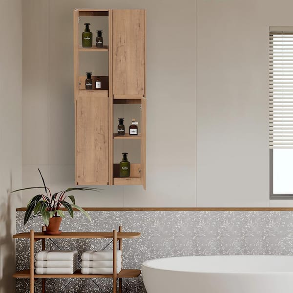 Modern 24 in. W x 9.8 in. D x 59 in. H Bathroom Storage Wall Cabinet in Imitative Oak