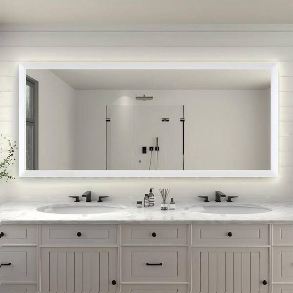 Shaila 72 in. W x 32 in. H Rectangular Metal Framed Wall Bathroom Vanity Mirror White