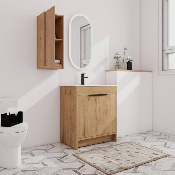 Sheffield 30 in. W x 18.30 in. D x 34.3 in. H Freestanding Bath Vanity Cabinet in Imitative Oak with White Ceramic Top