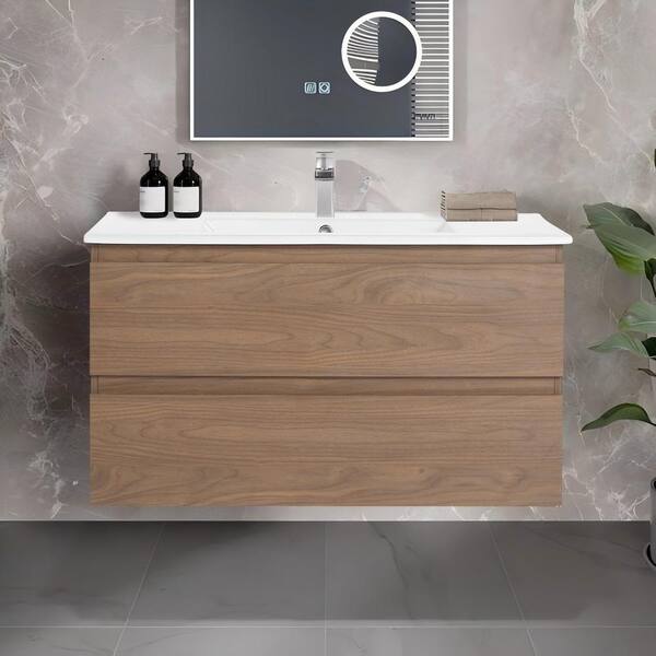 Simply 35.19 in. W x 17.94 in. D x 19.69 in. H Bath Vanity Cabinet without Top in Brown Oak Unassembled