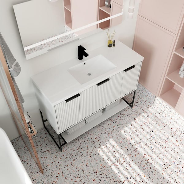 Simply 47.2 in. W x 18.1 in. D x 35.0 in. H Freestanding Bath Vanity in White with White Resin Top