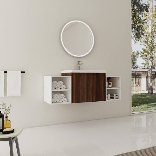 Stafford 48 in. W x 18.1 in. D x 19.3 in. H Floating Bath Vanity in California Walnut with White Resin Vanity Top