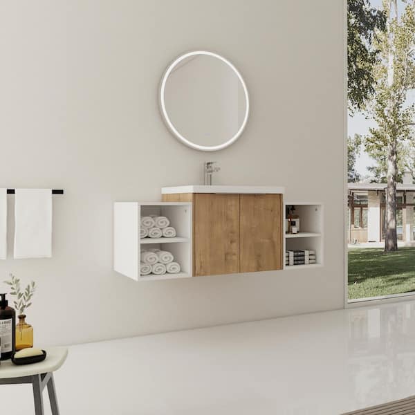 Stafford 48 in. W x 18.1 in. D x 19.3 in. H Floating Bath Vanity in Imitative Oak with White Resin Vanity Top