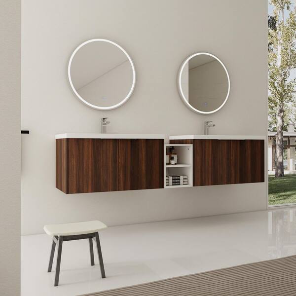 Stafford 82.9 in. W x 18.1 in. D x 19.3 in. H Floating Bath Vanity in California Walnut with White Resin Vanity Top