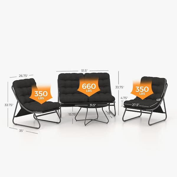 4-Piece Metal Outdoor Patio Conversation Set with Charcoal Grey Cushion, Coffee Table for Backyard, Garden
