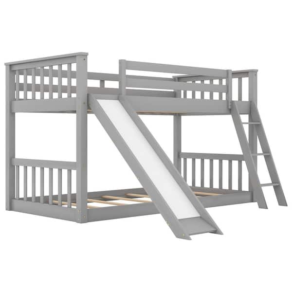 Gray Twin Bunk Bed with Reversible Slide and Ladder, Wooden Bunk Bed Frame for Kids Teens