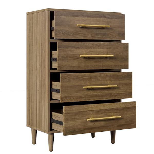 Walnut 4-Drawer Storage Chest with Golden Handles, Living Room Bedroom Dresser Chest of Drawers(30"L x 17"W x 46.2"H)