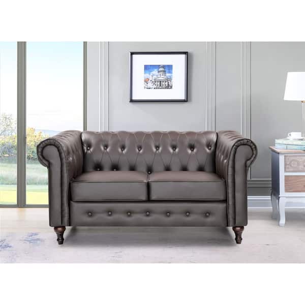 61 in. Brown Faux Leather 2-Seat Upholstered Loveseat