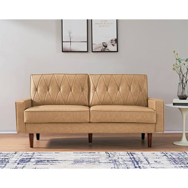 Acire 69.3 in. Wide Square Arm Faux Leather Straight 3-Seater Sofa in Beige