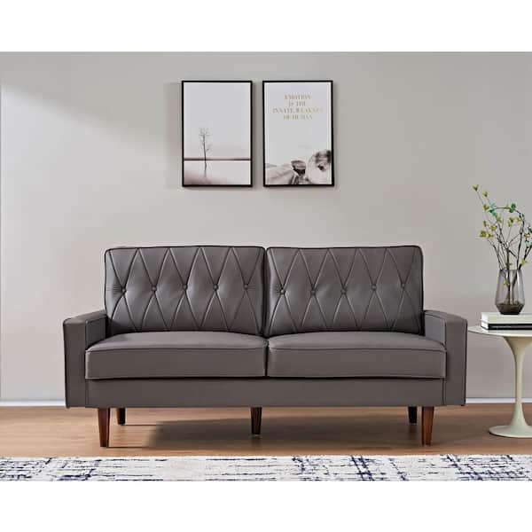 Acire 69.3 in. Wide Square Arm Faux Leather Straight 3-Seater Sofa in Gray