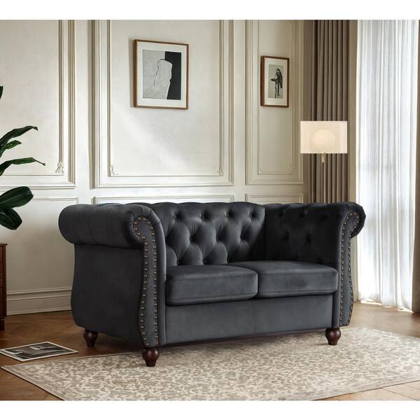 Chesterfield 62 in. Wide Rolled Arm Velvet Modern Rectangle Loveseat in Black