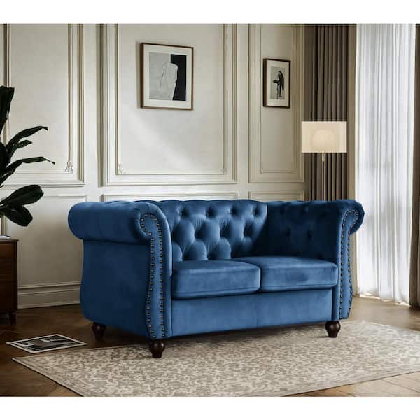 Chesterfield 62 in. Wide Rolled Arm Velvet Modern Rectangle Loveseat in Dark Blue