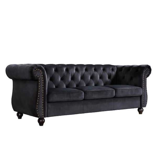 Chesterfield 83 inch Wide Rolled Arm Velvet Modern Rectangle Sofa in Black