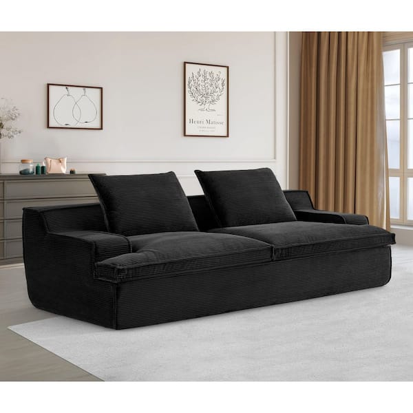 Crafted 91 in. Wide Straight Arm Corduroy Modern Foam Rectangle Sofa in. Black