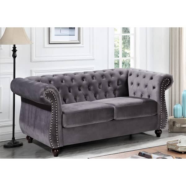 Feinstein 67.6 in. Gray Velvet 2-Seater Upholstered Loveseat