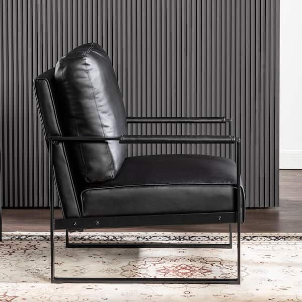 Hosam Black 25.4 in. PU Upholstery Metal Arm Chair (Set of 1)