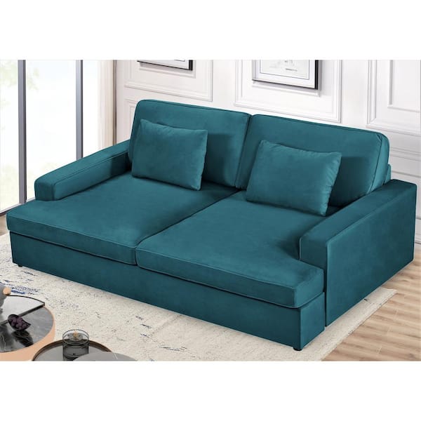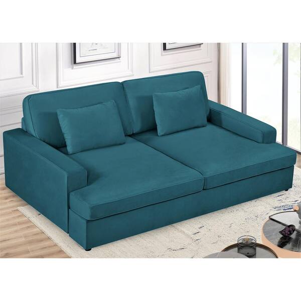 Kimberley 94.49 in. Greenish Blue Solid Velvet Twin Size Sofa Bed