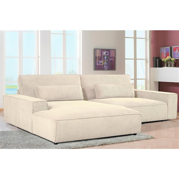 Mayview 105.52 in. W Sqaure Arm 2-Piece L Shaped Polyester Mid-Century Left Facing Sectional Sofa in Beige